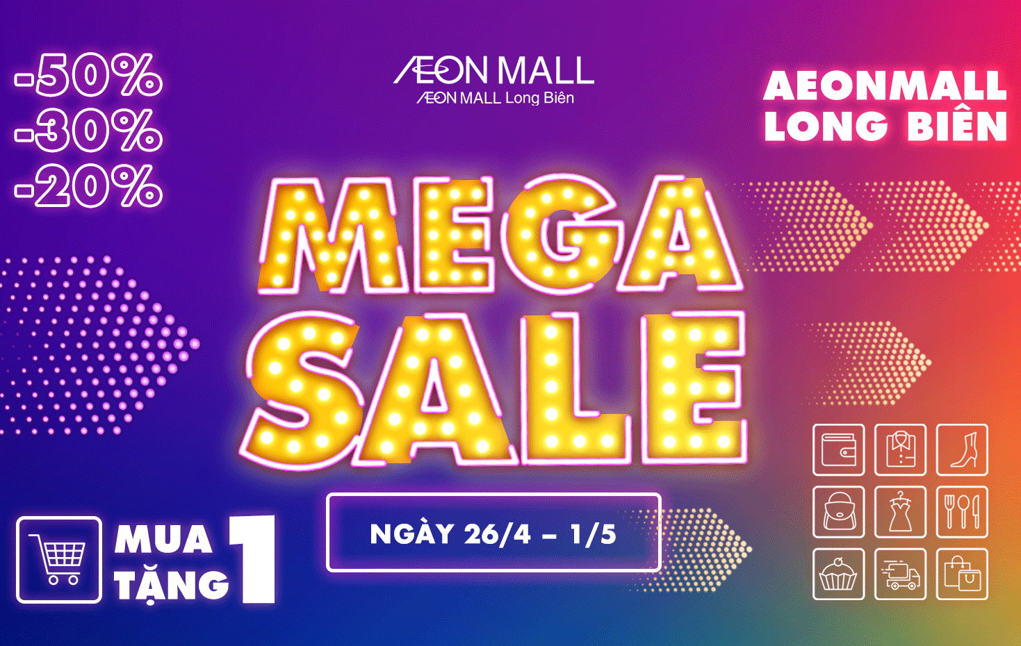 Khi mua sắm tại AEON MALL LONG BIÊN trong thời gian diễn ra MEGA SALE quý khách sẽ có cơ hội nhận được nhiều ưu đãi hấp dẫn: