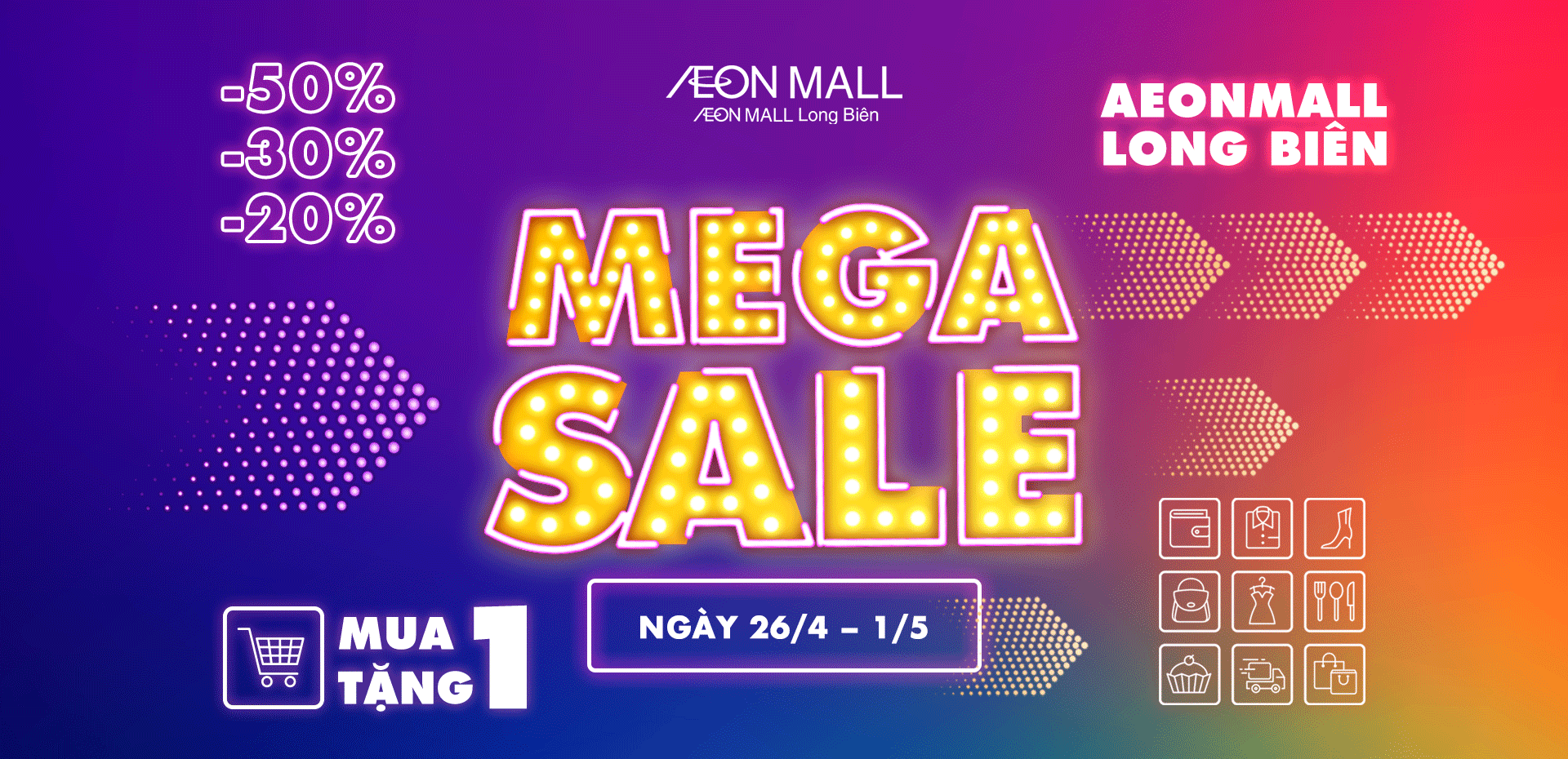 Khi mua sắm tại AEON MALL LONG BIÊN trong thời gian diễn ra MEGA SALE quý khách sẽ có cơ hội nhận được nhiều ưu đãi hấp dẫn: